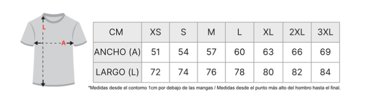 | Talla | XS, S, M, L, XL, XXL, XXXL |