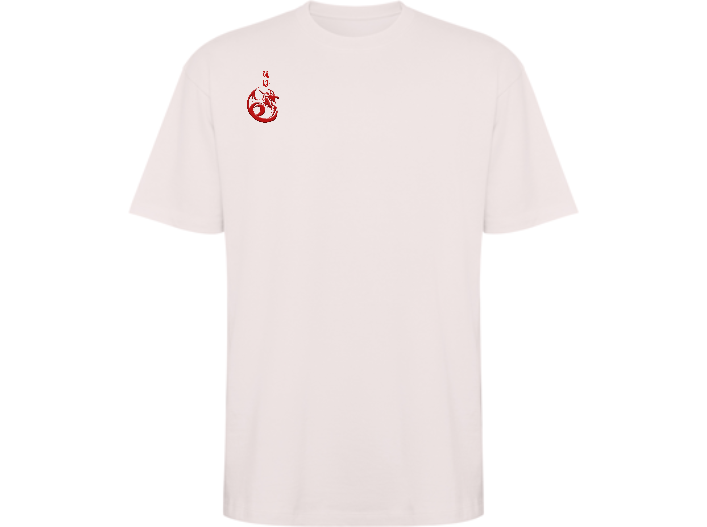 Camiseta de manga corta estilo oversize. Cuelo redondo ribeteado en canalé 2×1 con cubrecosturas a tono. Costuras laterales.